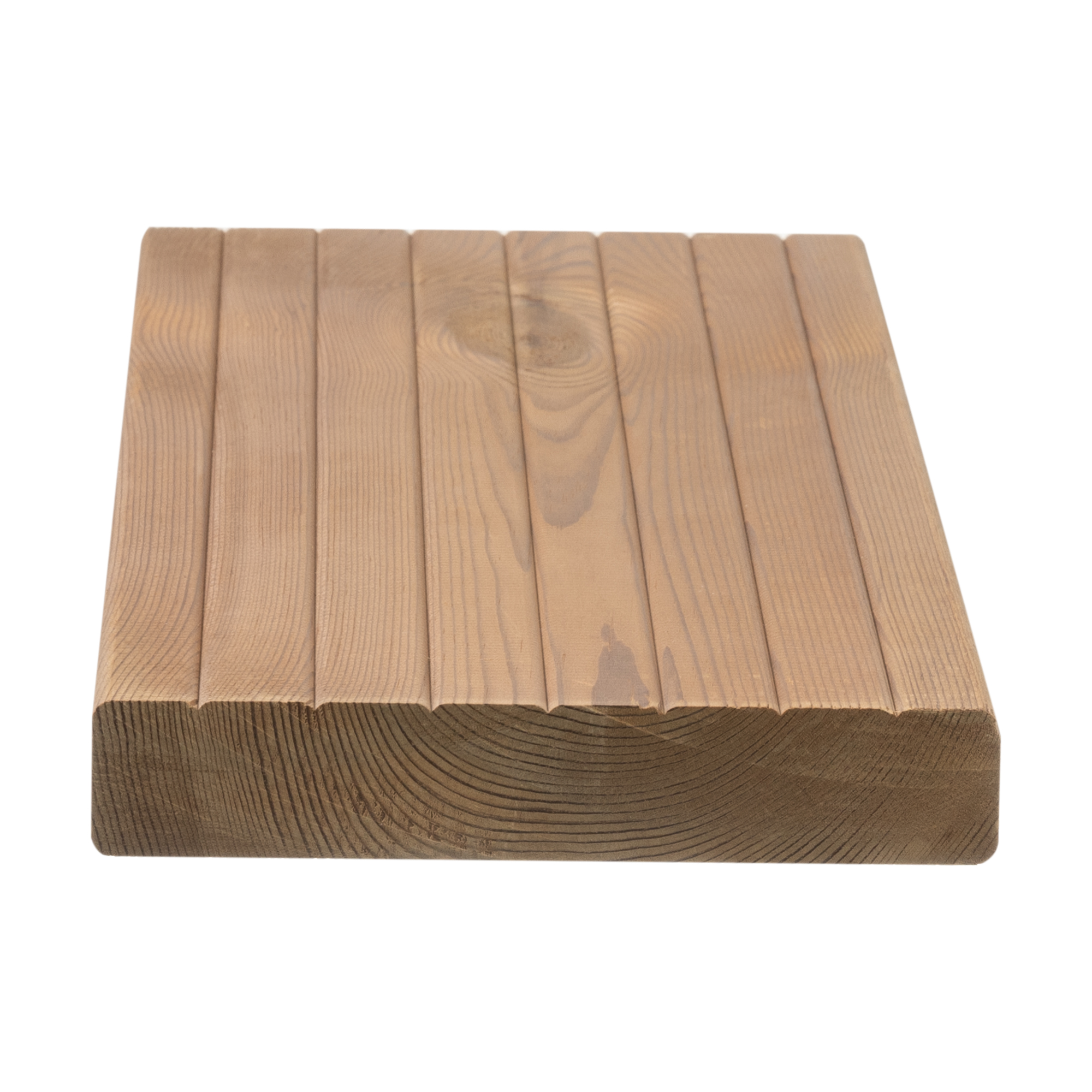 Termo Sosna Skandynawska to drewno o miodowo-brązowej barwie. Deski tarasowe z niej wykonane posiadają 2 klasę odporności na biodegradację. Oznacza to nawet 25 lat bezproblemowego korzystania z tarasu. Sosna skandynawska rośnie w surowym klimacie, w wyniku czego ma małe przyrosty roczne. Dzięki tej właściwości jest o wiele bardziej trwała i wytrzymała od naszej rodzimie występującej sosny. Modyfikacja termiczna dodatkowo zwiększa trwałość i stabilność materiału, a poza tym pozbawia go żywicy.